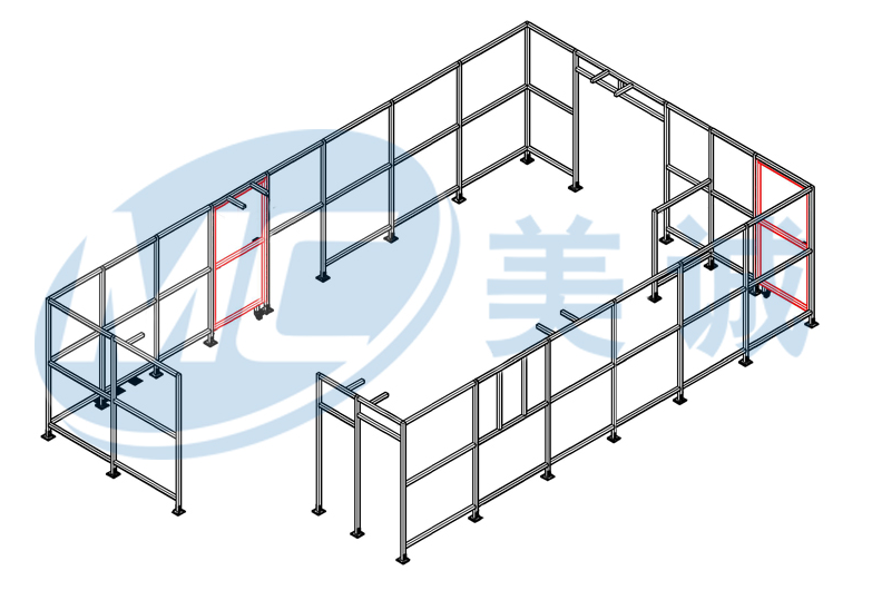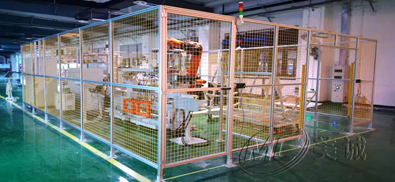 上圖我們一個(gè)車間防護(hù)網(wǎng)也就是鋁型材圍欄的普通案例。這個(gè)防護(hù)網(wǎng)是用在車間,保障機(jī)器人設(shè)備安全以及相關(guān)人員安全的。采用螺栓連接固定,安裝快速,施工周期短??筛鶕?jù)實(shí)際情況需求選擇網(wǎng)格樣式、可透 視圍欄、可移動(dòng)圍欄等。這種車間防護(hù)網(wǎng)設(shè)計(jì)圖也很容易看的懂,框架部分都是用鋁型材搭建組裝的。從圖上可以看到都是采用方形地腳連接件固定在地面上,除了地腳其他鋁型材配件連接件都是在圖上看不到的,因?yàn)榇蠖鄶?shù)都是螺栓螺母連接,并不外突。