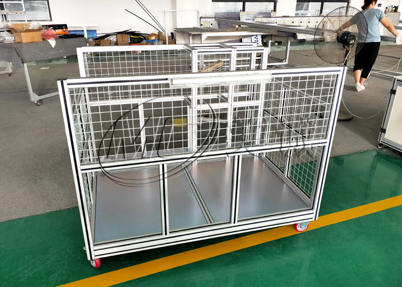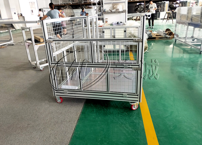 才生產(chǎn)加工;鋁合金料箱之前先是根據(jù)要求設(shè)計(jì)出一種合格的料箱圖紙,圖紙包含所選材料清單。再根據(jù)清單生產(chǎn)加工組裝即可。鋁合金料箱根部其承載要求選擇型材和四周網(wǎng)格材料??蝮w部分通常是選擇3030鋁型材和4040鋁型材組合搭建,網(wǎng)格部分一般選擇40*40mm,直徑是4mm的鍍鋅網(wǎng)格,型材和網(wǎng)格部分都是用鋁型材專用配件連接,無焊接。一般都是用螺栓螺母連接再用角件加固,因?yàn)榱舷?、周轉(zhuǎn)車等都是需要運(yùn)輸物料的,所以底部一般都是需要安裝腳輪,腳輪一般也是選擇萬向剎車福馬腳輪,可以隨處移動(dòng)或者靜止的。